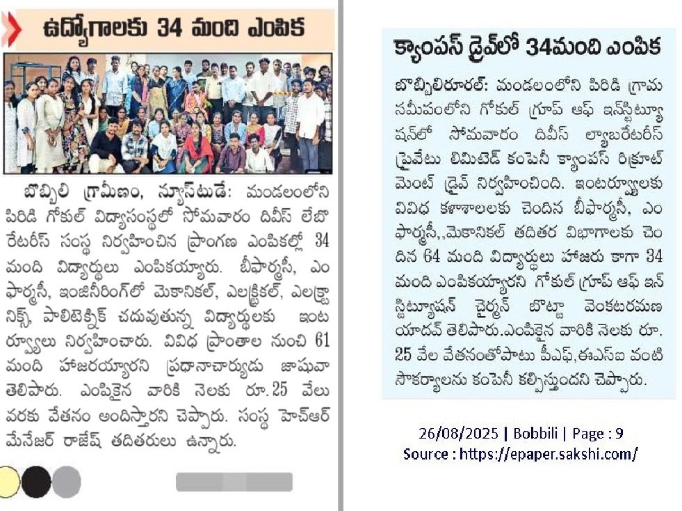 - To emerge as a leader in placement where multinationals vie with each other to recruit students of Gokul.